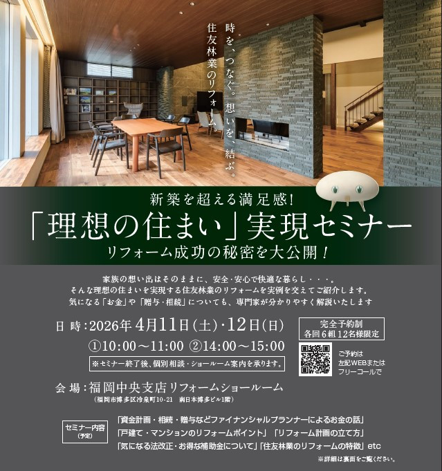 住友林業のリフォームの特徴は、木の性能を最大限に引き出すトータルリフォーム提案です。