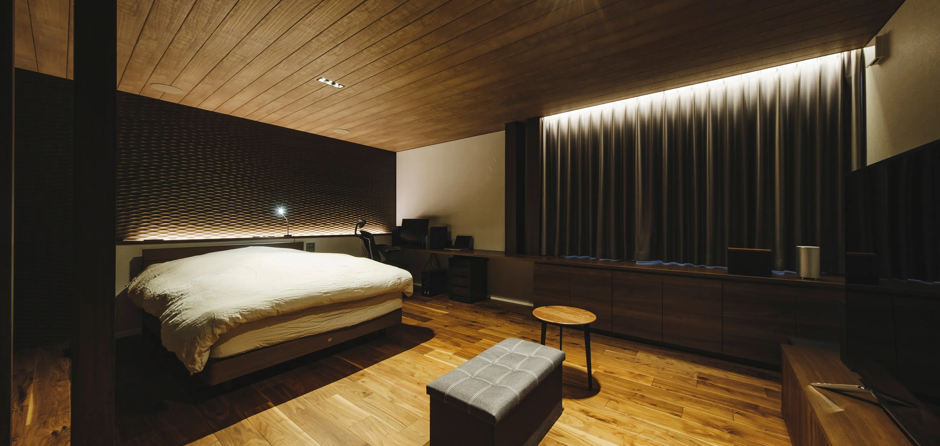 住友林業のリフォームが提案するのは、まるで森の中にいるような安らぎに満ちた「木のある暮らし」。木の優しい手触りや香りは、心身を癒やし良質な睡眠をもたらします。厳選したオリジナル木材を床・壁・天井へふんだんに採用し家具や照明までトータルにコーディネートすることで、木の質感を最大限に引き出した心地よい空間を実現します。