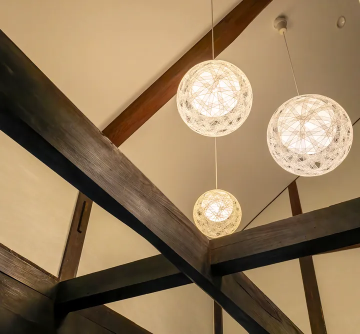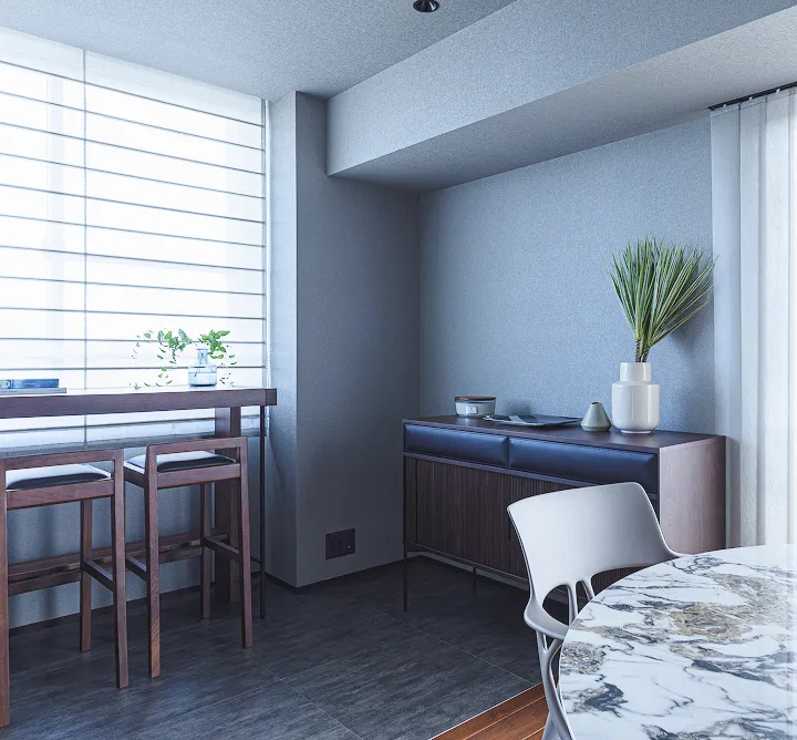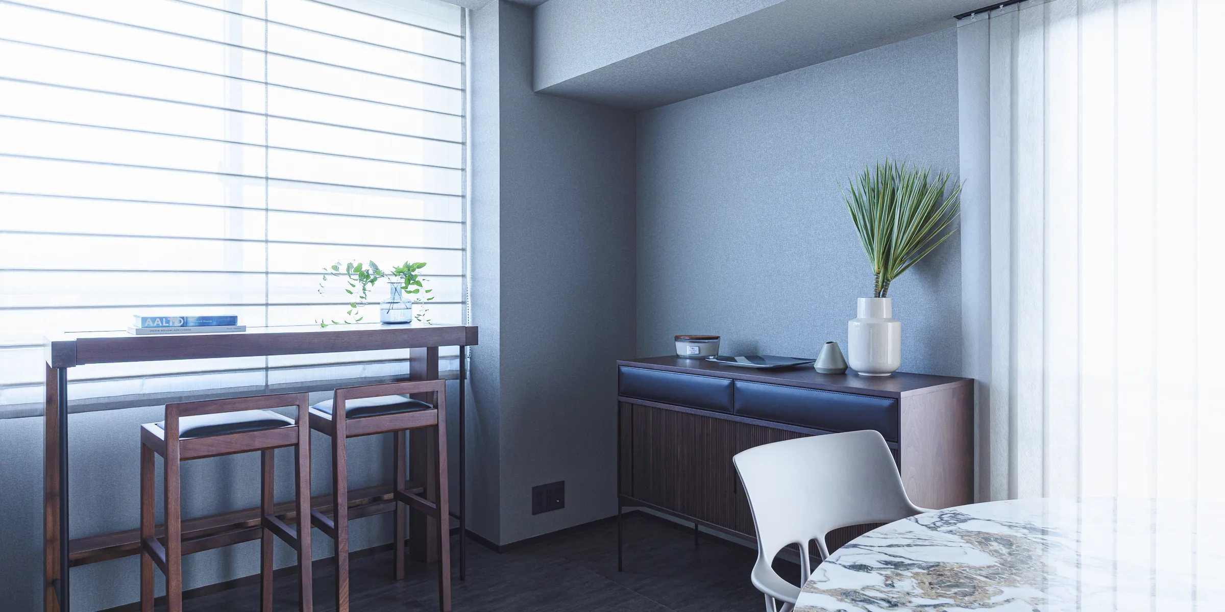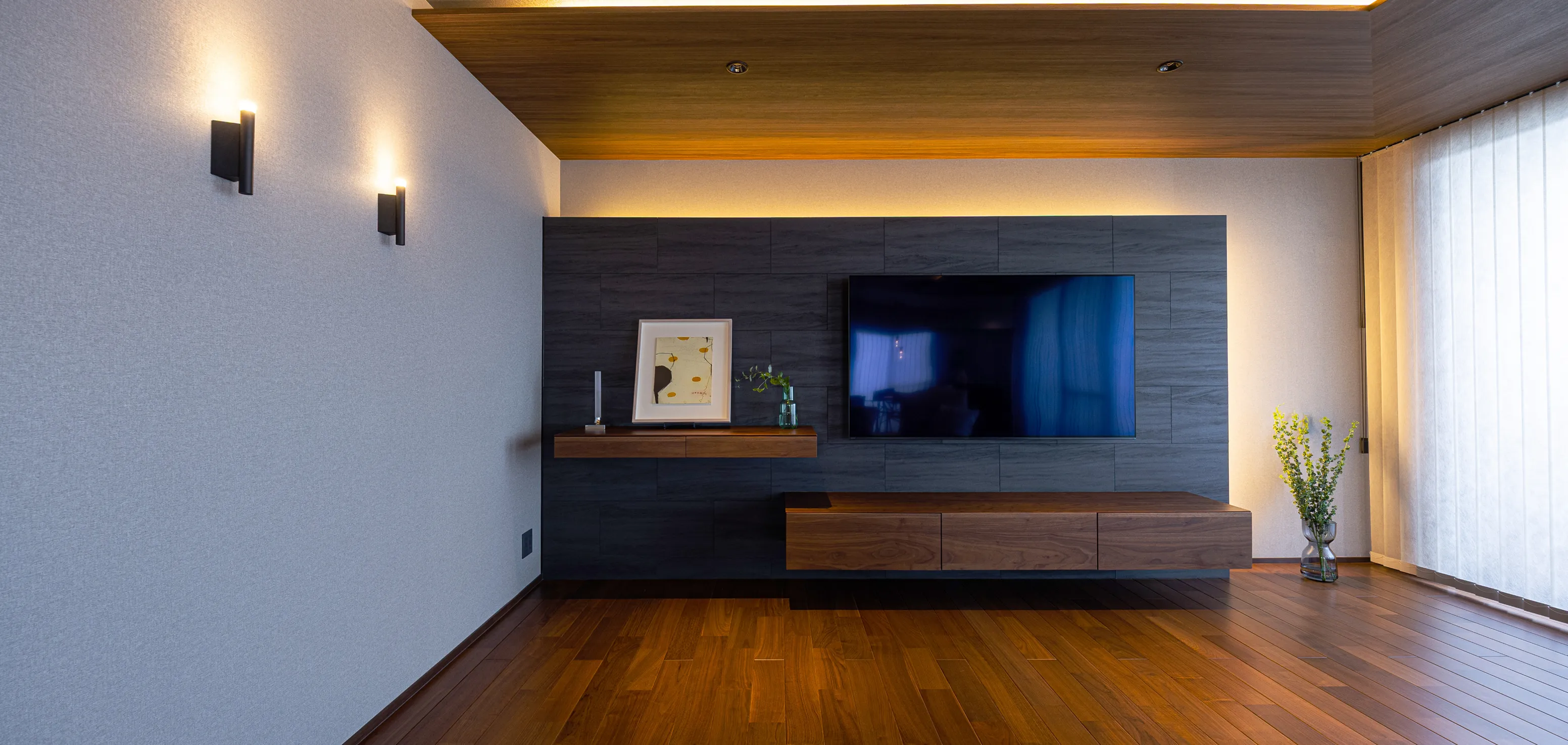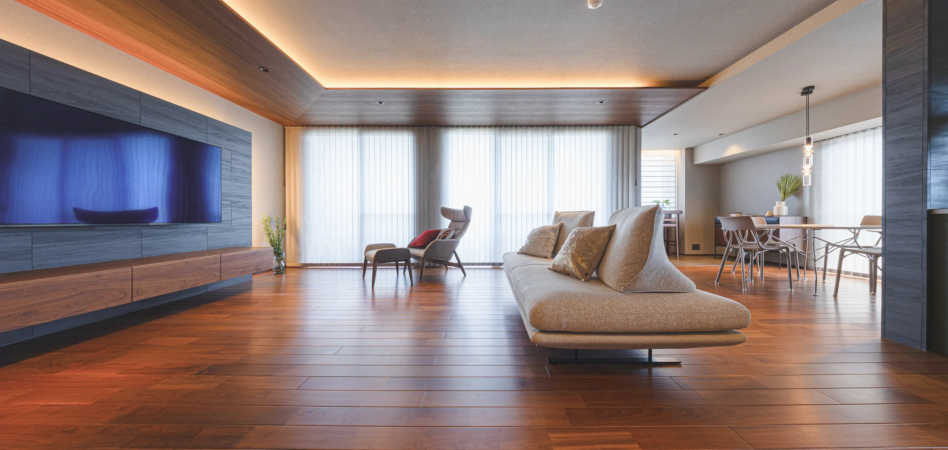 お部屋に統一感を生むコツは、床・壁・天井などの部材選び、内装のカラーコーディネートだけでなく、家具から照明、カーテンまでトータルで空間をデザインすることです。