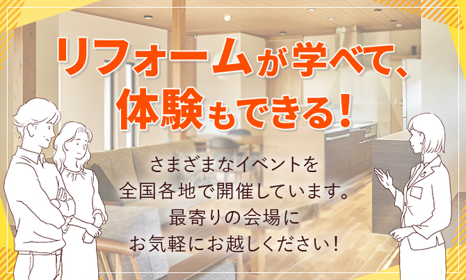 住まいのお悩みに建築士やファイナンシャルプランナーなどの専門家がお応えします。個別に相談ができる「リフォーム相談会」や「リフォームセミナー」にご参加いただけます。