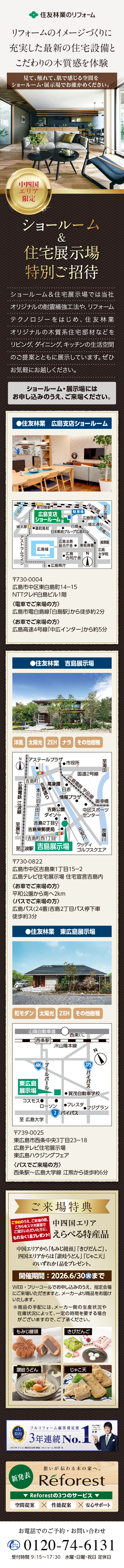 | 会場 | ●住友林業広島ショールーム ●吉島展示場 ●東広島展示場 |