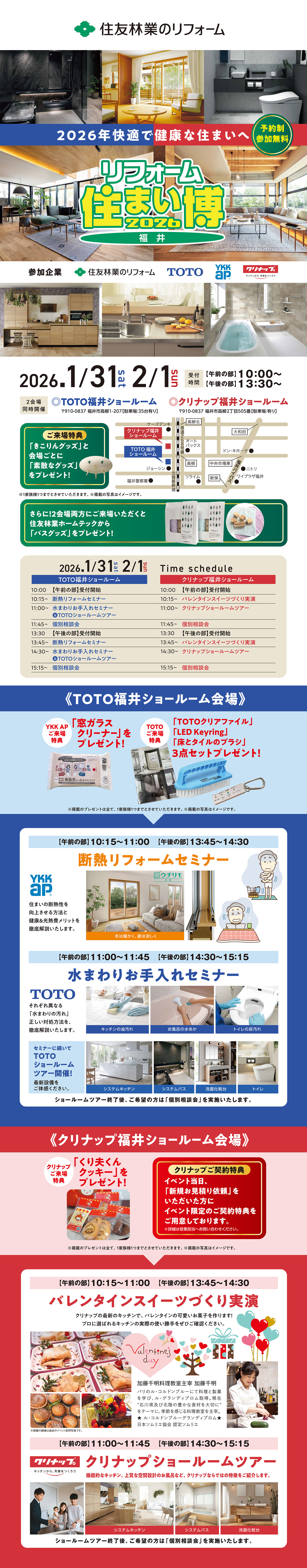 | 会場 | TOTO福井ショールーム / クリナップ福井ショールーム