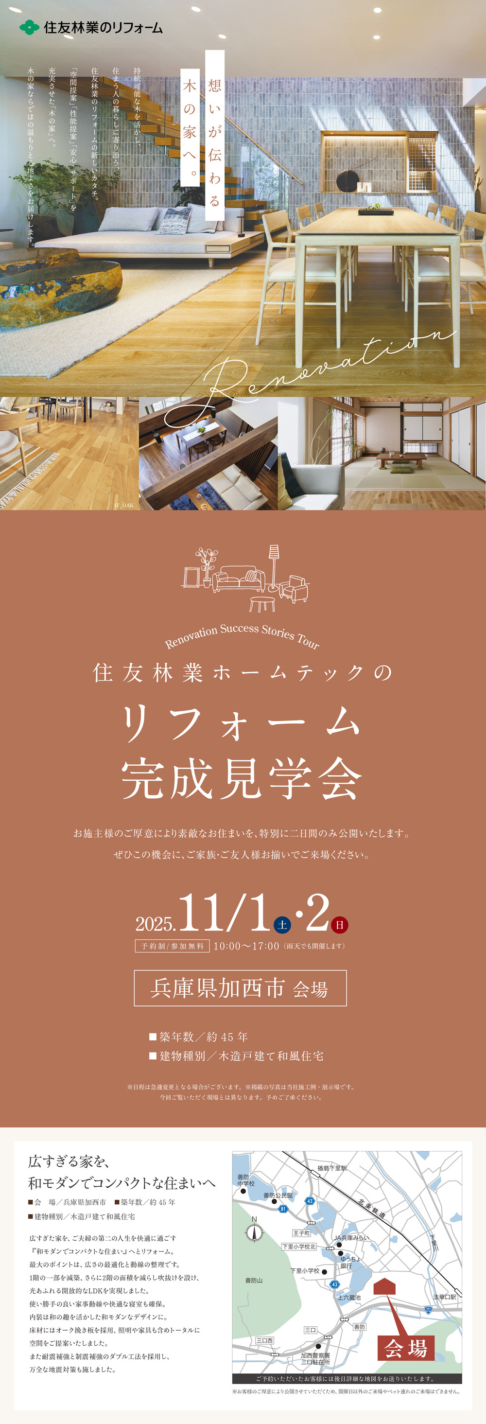 加西市で開催!完成現場見学会「和風戸建て 広い家の減築でコンパクトで使いやすい快適空間リノベーション」のご案内