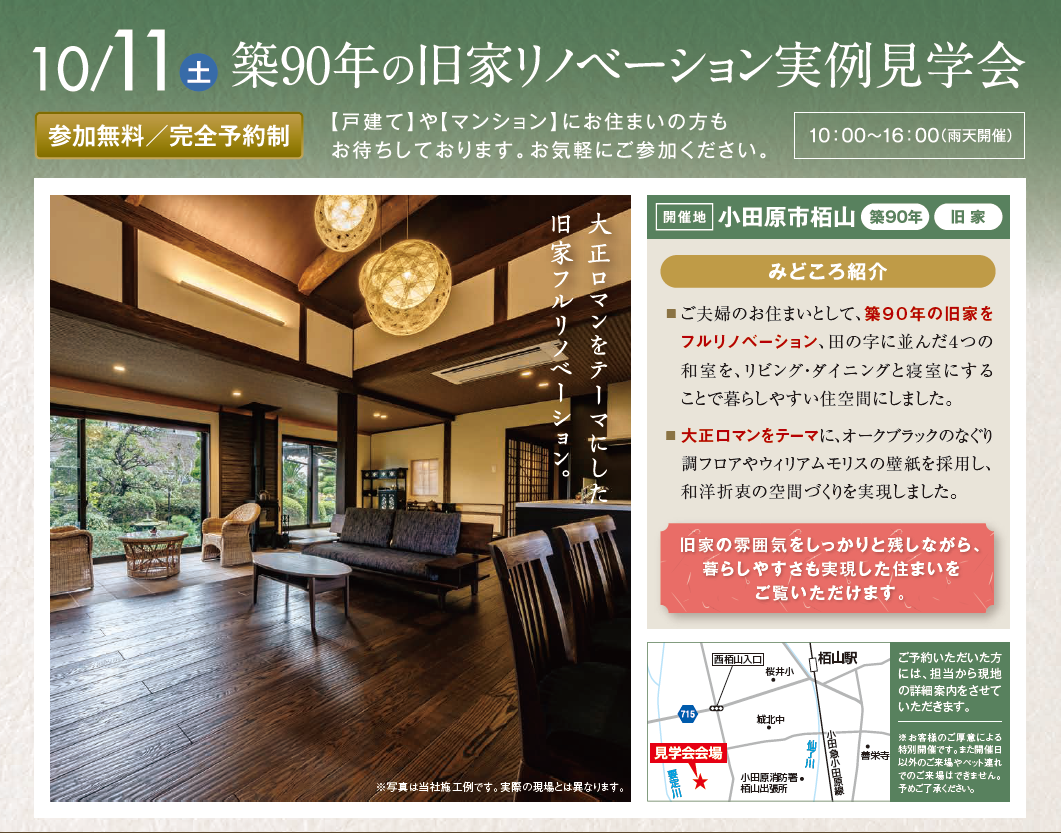 小田原市で開催!「築90年 旧家フルリノベーション完成見学会」のご案内