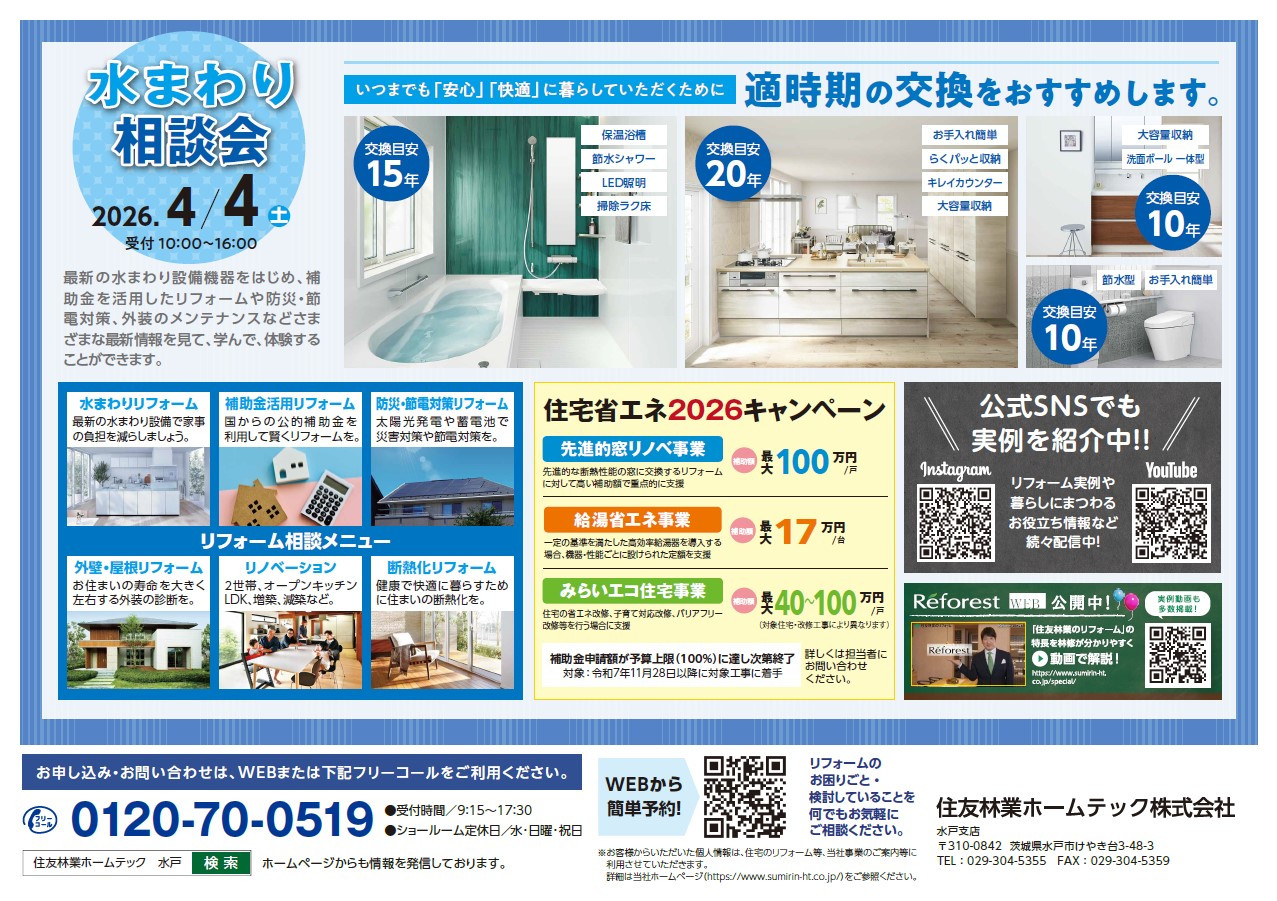 このたび、LIXIL 水戸ショールームにて『水まわりリフォーム相談会』を開催します。