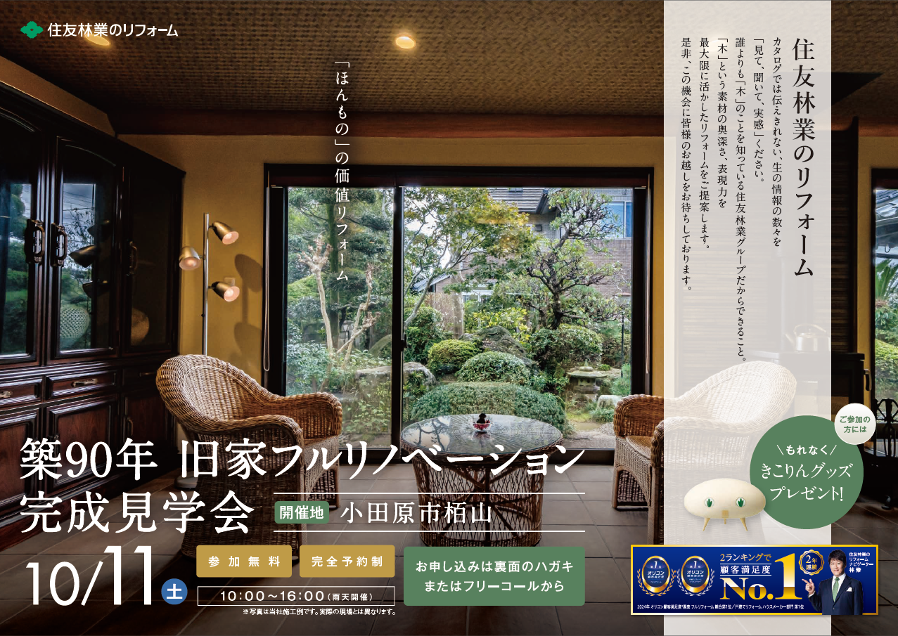 小田原市で開催!「住友林業のリフォーム完成現場見学会」のご案内