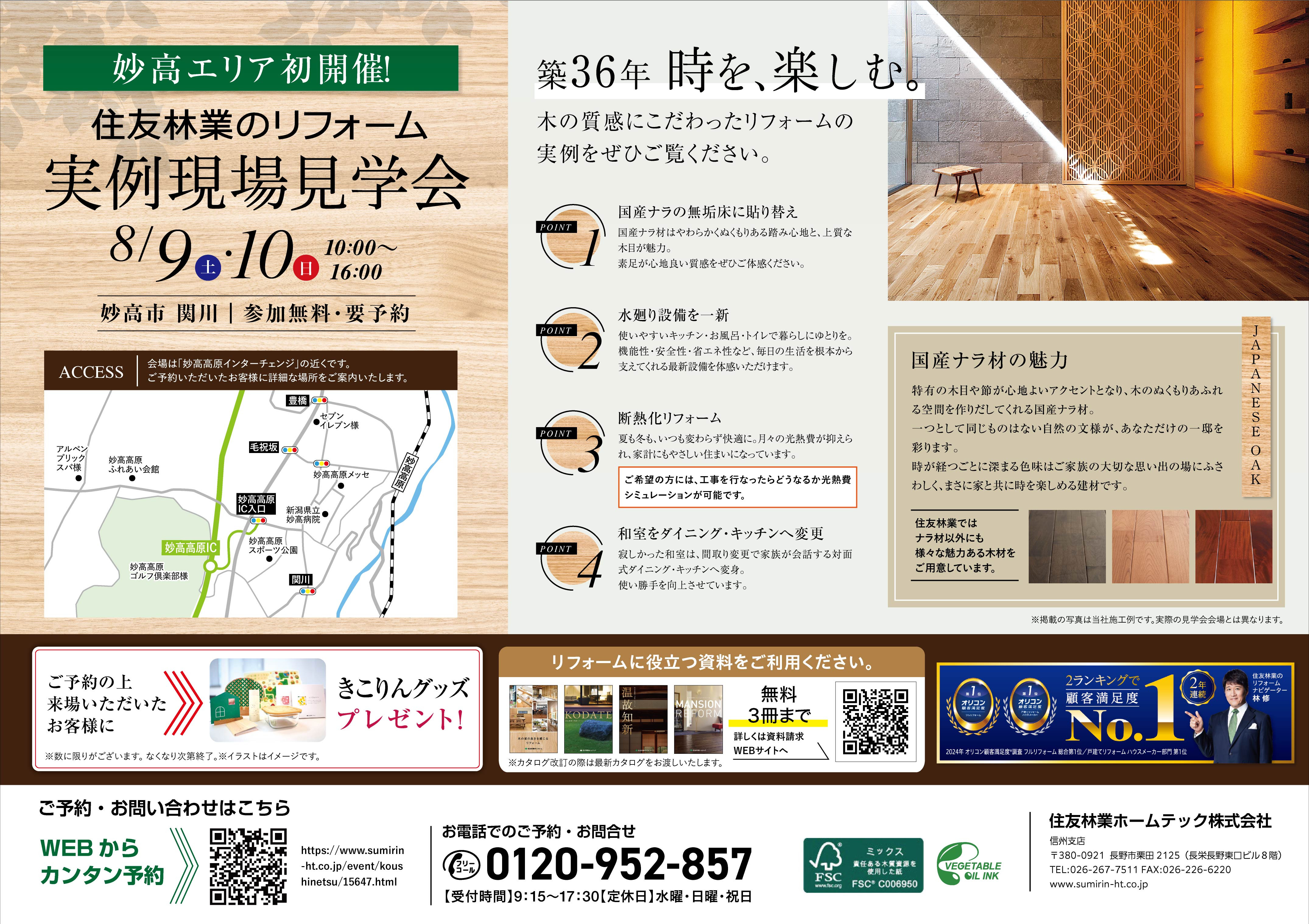 新潟県妙高市で開催!「住友林業のリフォーム完成現場見学会」のご案内