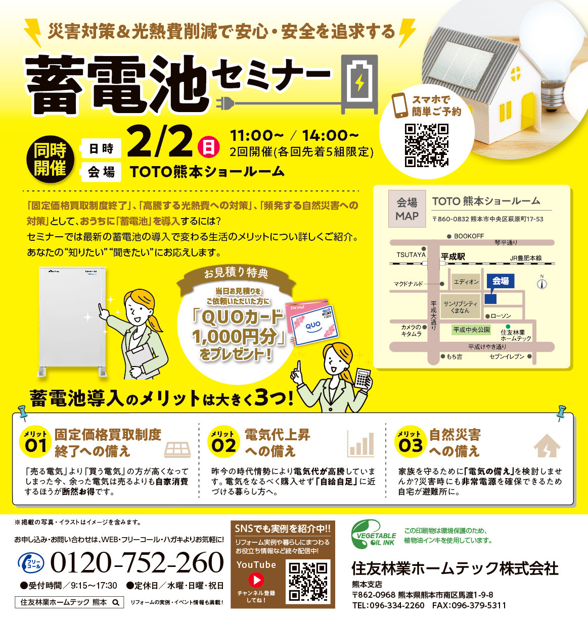 もしもの停電に備えた安心・安全で、自給自足が可能な環境に優しい暮らしに向けたセミナー等も開催します。