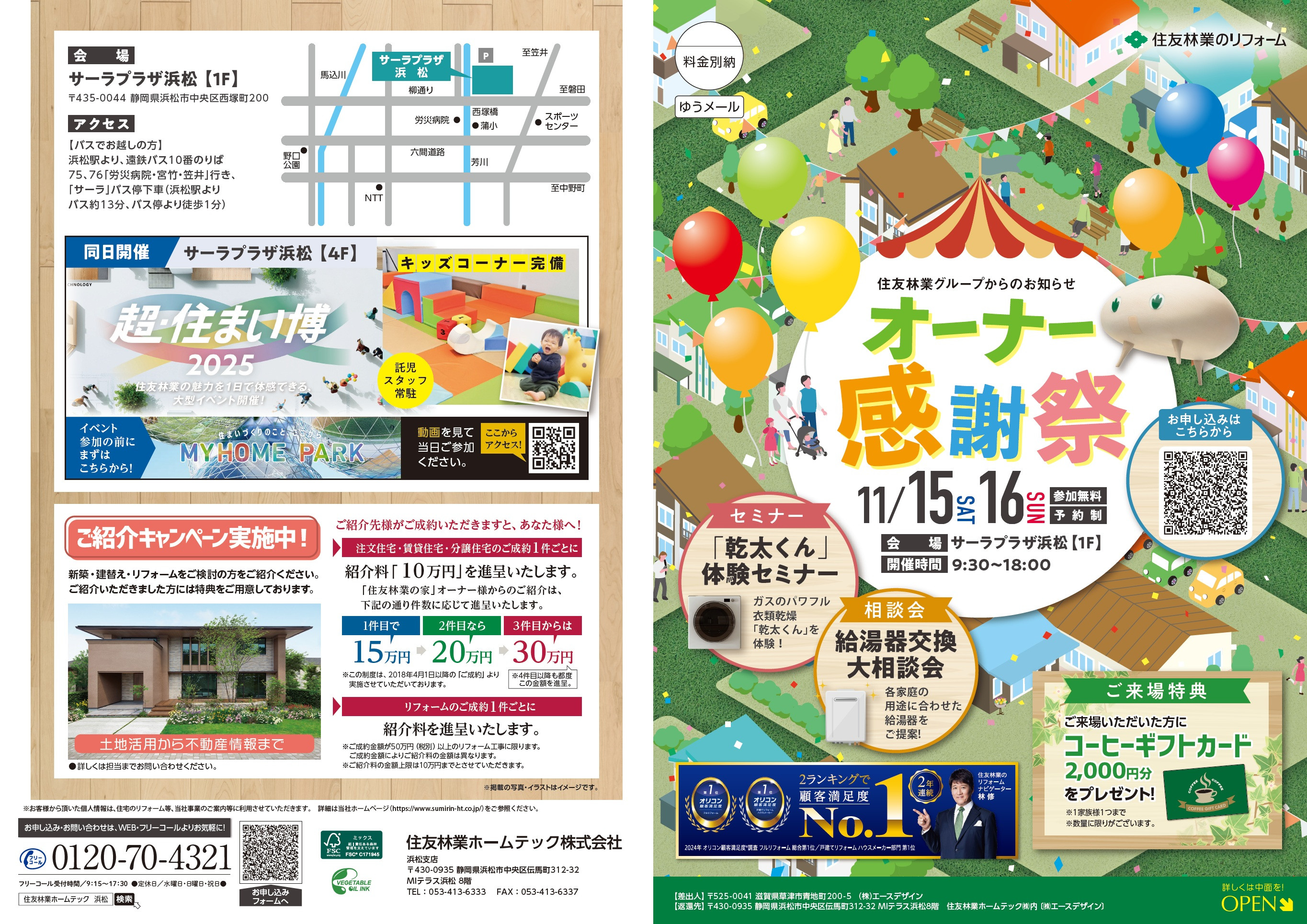 「住友林業の家」にお住まいの皆様へ感謝を込めて、『オーナー感謝祭』を開催します!