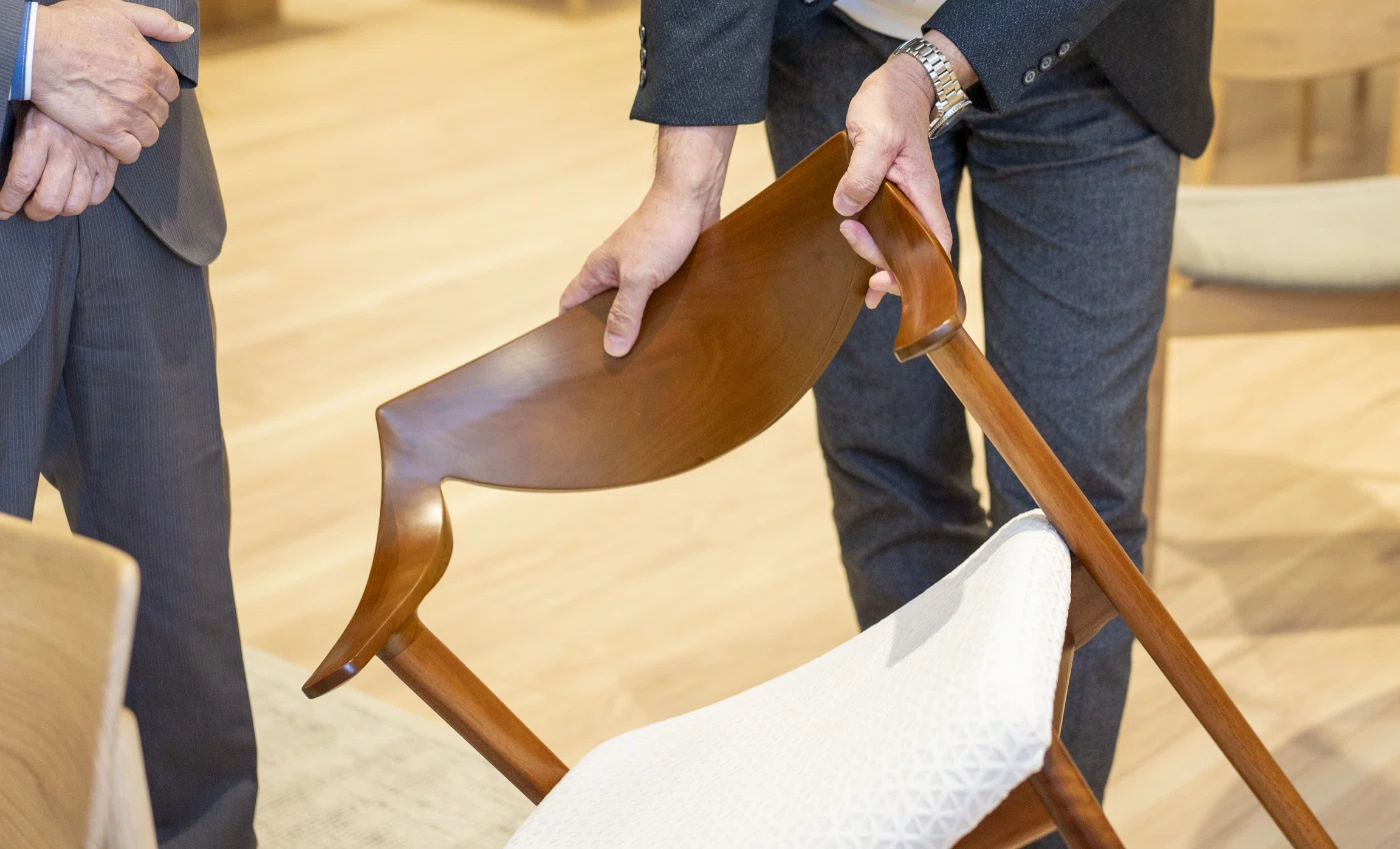 カリモクさんは人間工学に基づいた「座り心地研究」をされていて、それが素晴らしい。美しいデザインである上に、座り心地も強度もしっかり保たれています。
