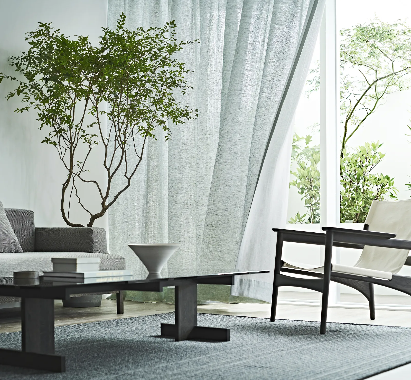 色や素材で涼感を演出カーテンは空間の中でも大きな面積を占めるアイテム。色や素材の質感も重視して選びたいものです。