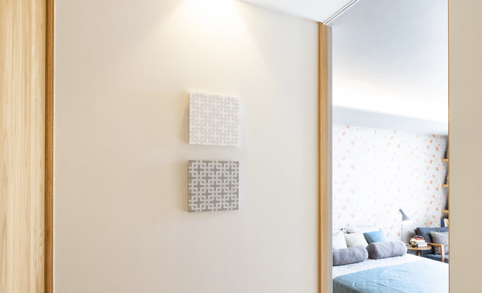 木の空間に調和し、表情を深める「tonowa」のアート作品、いかがでしたか。サイズや色柄など、「tonowa」の詳細はお気軽にお問い合わせください。