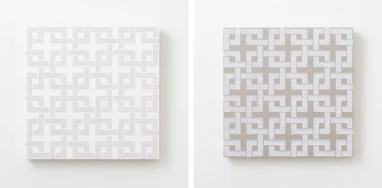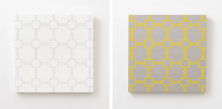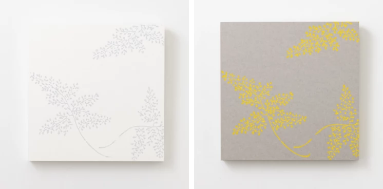 和紙に、顔料・胡粉などで文様を写しとって作られるからかみ。ふすま紙や屏風、掛け軸など、和の空間をしつらえる素材です。このからかみを、現代的な感覚の正方形のアートパネルとしました。カラーパレットは落ち着いた色をベースに、アクセントとして鮮やかな色も加え、どんな空間にも馴染むデザインを実現。小さなスペースにも掛けられ、並べて飾ればまた違った印象に。和紙独特のナチュラルな表情が、空間にぬくもりをもたらします。