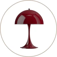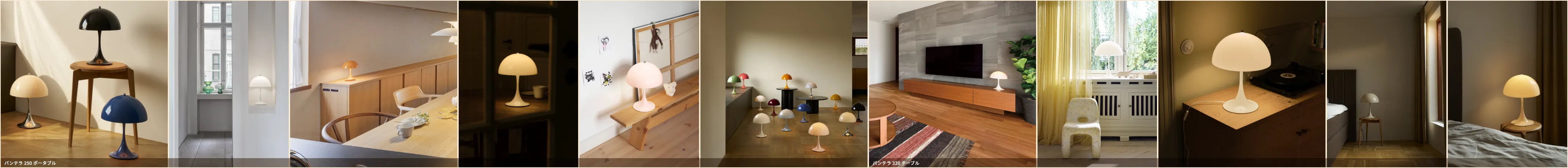 有機的なフォルムと鮮やかなカラーヴァリエーションが特徴的な、ヴァーナー・パントンデザインのテーブルランプ。半球形のシェードがやわらかな拡散光を周囲の空間に広げやさしい雰囲気を演出します。