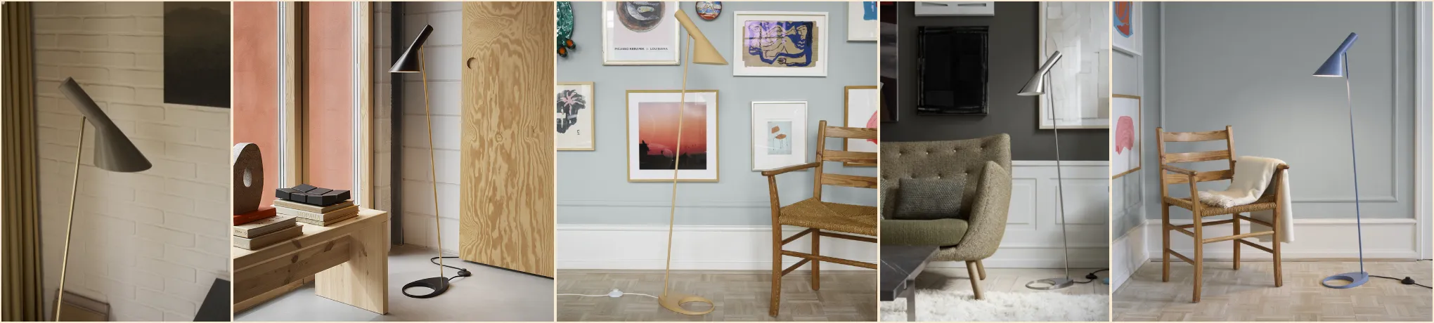 世界的建築家アーネ・ヤコブセンが、コペンハーゲンのホテル建築を手掛けた際、トータルデザインの一環として生まれたのがAJフロアランプ。ミニマリスティックで個性的なフォルムを持ち、スポットライトのように下方に明るい光を放ちます。