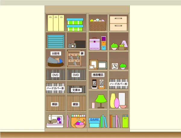 リビングに置くべきモノの取捨選択ができたら、次はその指定席をつくりましょう。収納は場所や人によって使い勝手が違うので、自分に合うようにカスタマイズ出来るかどうかが大切になります。