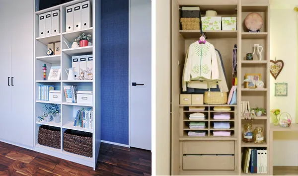 「住友林業の家」では、収納は場所や人によって使い勝手が違うという考え方があるため、同じ規格でオープン収納と扉付タイプが選べ、多彩なパーツを組み合わせてカスタマイズができます。