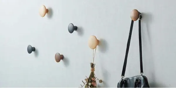 もし、いきなり大きな家具を導入するのは難しい場合は、まずは服や荷物の一時置き場を設置するところから始めてみてはいかがでしょうか。例えば「木製フック」なら服や荷物がさっとかけやすく、服をかけてない時もおしゃれな見た目で、どんなテイストのリビングにもマッチします。