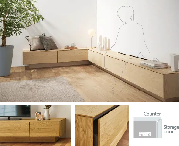 リビングは家のなかでもっとも広い空間でありながら、ソファーやテーブルなどの大型家具も多く、収納スペースが少なくなりがち。一般的な住宅の新築時には収納がまったく設けられていないというケースもめずらしくありません。