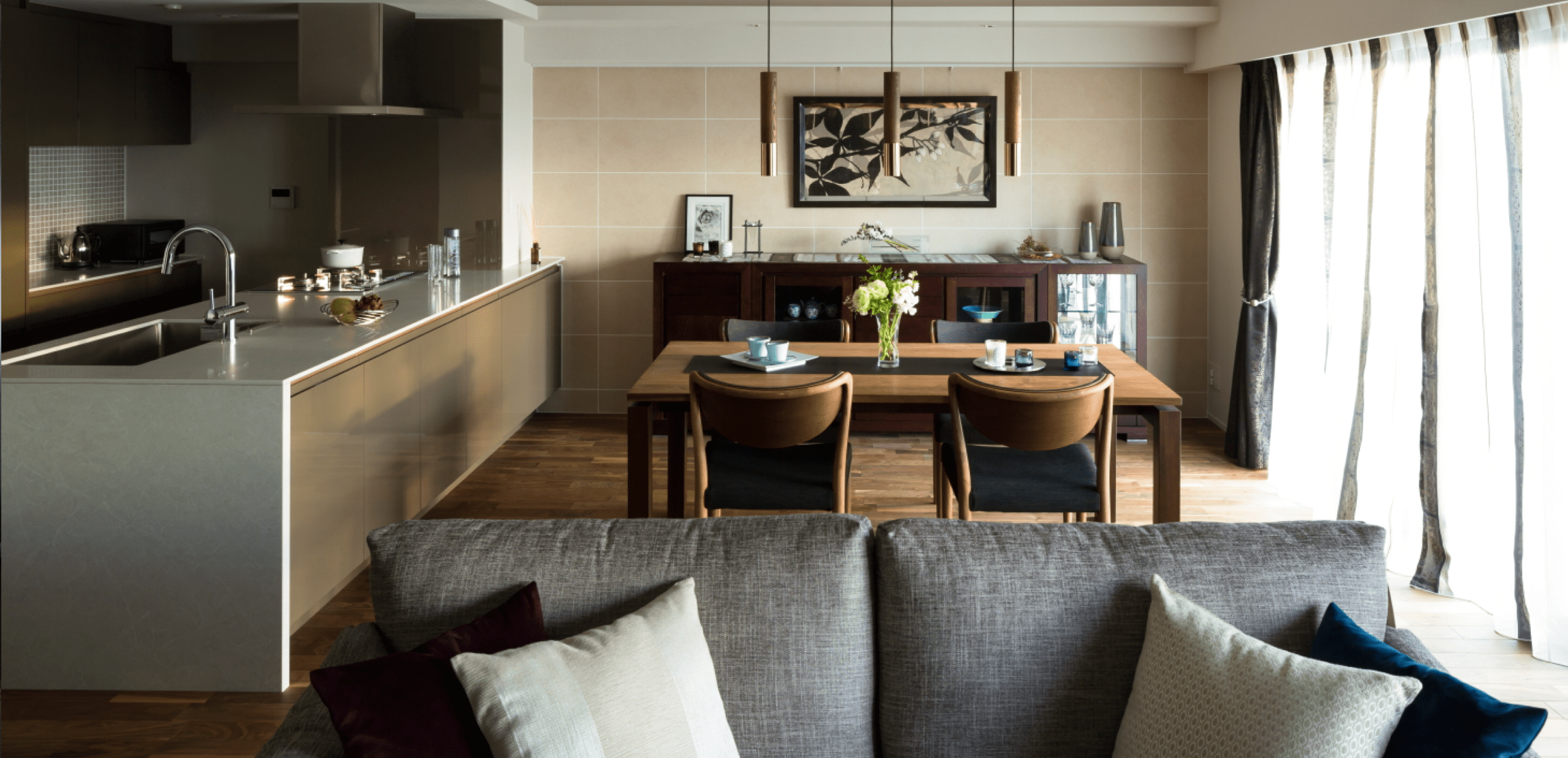 ② 全ての素材に細部までこだわり、仕上げのツヤ感をコントロールすることで上質な空間に。