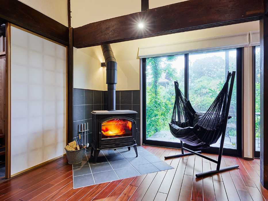 リビングの一角に設けた薪ストーブのコーナーは、ご家族の冬の特等席。窓を断熱性の高い複合サッシに入れ替えたことで、冬もお気に入りのお庭の景色を心ゆくまで楽しめます。日本家屋の情緒と西洋の機能美が調和した、温もりあふれる和モダンの空間に仕上がりました。