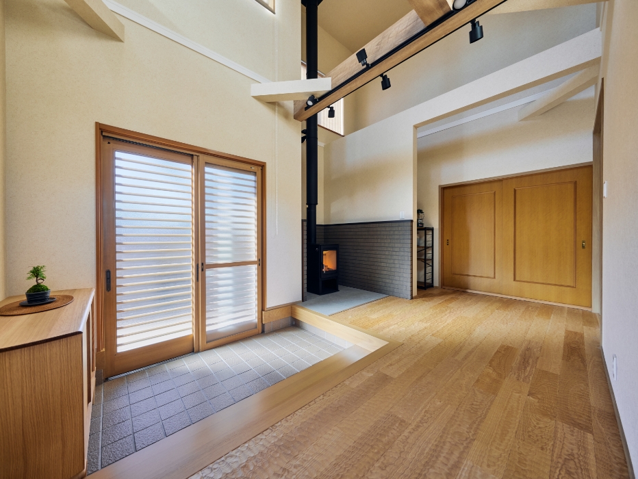 吹き抜けの玄関や薪ストーブで理想を実現