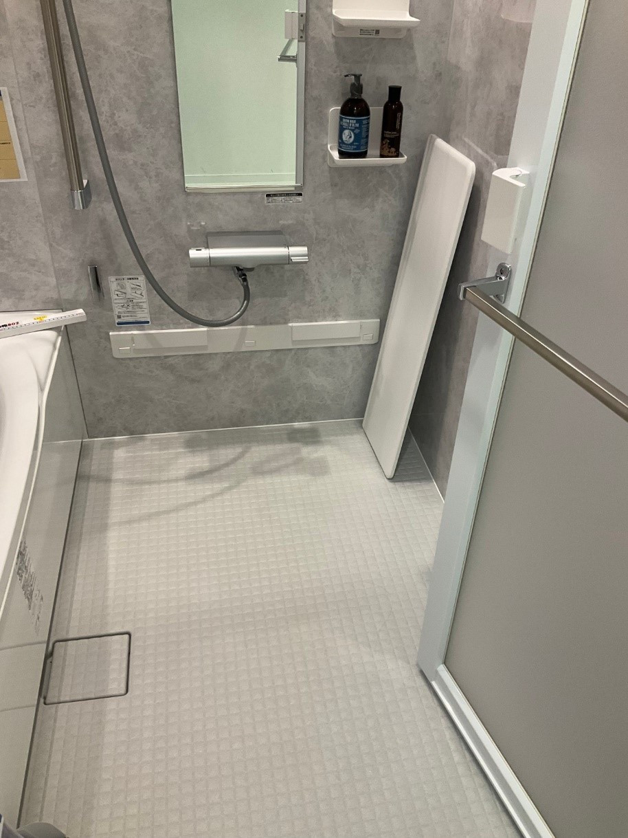 他メーカーに比べて洗い場の床の溝が浅くお手入れしやすくてヒヤッとしにくく、水はけもばっちりです!