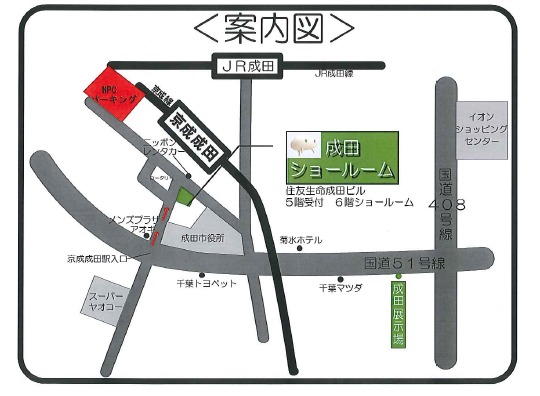 成田支店ショールームは京成成田駅徒歩5分