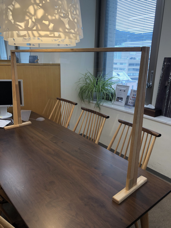 ⑤お打合せの机には透明のスクリーンを設置
