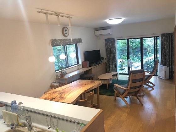 また、無垢板のダイニングテーブルがアクセントとなり 空間に趣きを感じさせてくれています。